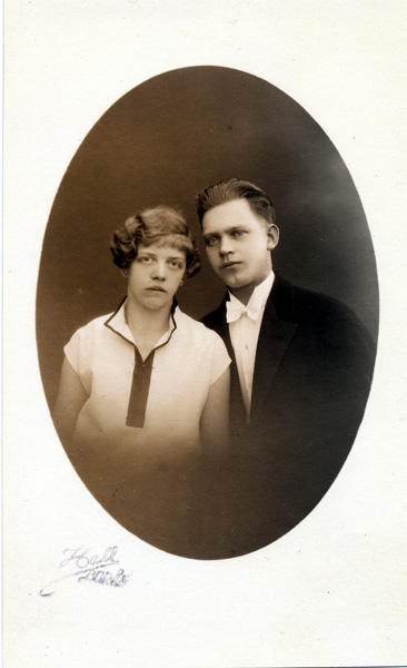 // Text på baksida avser Anny Sofia GUNHILD Bring född 11 aug 1893 i Blackstad. Dock så kan det inte vara hon på fotografiet med tanke på personernas ålder och klädsel. Gunhild gifte sig den 31 okt 1936 med Ernst ALGOT Svensson född den 26 sep 1890 i Gärdserum. // Med största säkerhet föreställer bilden; Arrendator, soldat No33 Johan Alfred Kling i Frösvi,