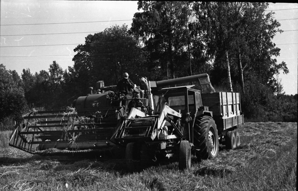 Sökord: skördetröska MF tröskning skörd spannmål säd traktor vagn