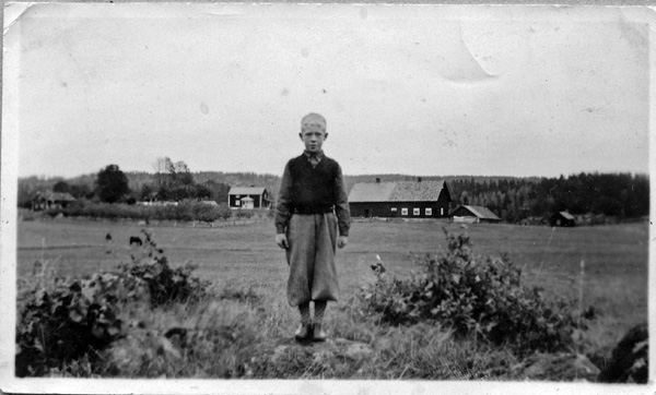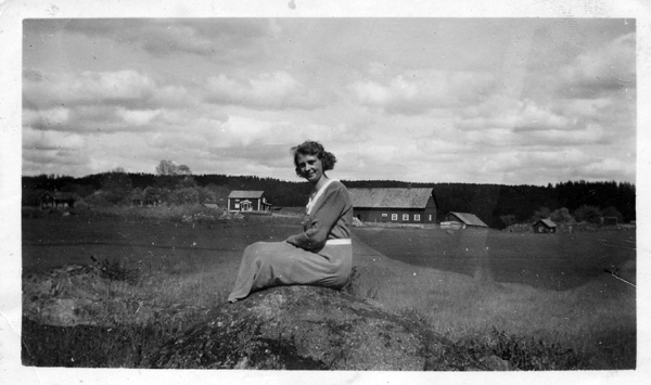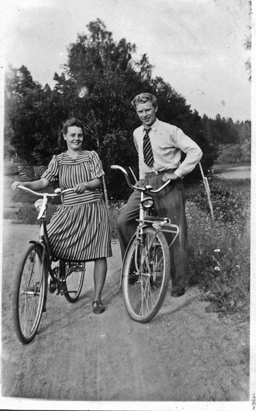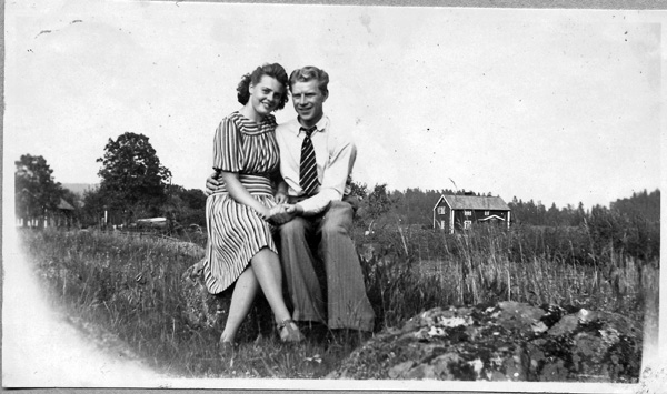 Bildtext: Elna Starkenberg och Ingvar Samuelsson, I bakgrunden Lilla Skälhem smedjan till vänster.