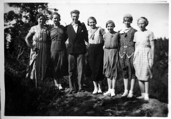 Sökord: flickor damer gruppbild Motivkategori:kvinnor Id:8143 Fotograf: okänd Fotoår: 1949 Bildnummer: Setk_5_6 Förening: Odensvi hembygdsförening Land: SE Motivplats: Kalmar län, Västervik, Odensvi, Klint Teknik: skannat sv/v foto Rättighet: Originalplats: (visas ej publikt)
