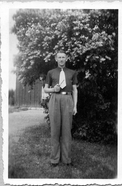 Sökord: man porträtt pipa rökare slips bälte Karlstorp Motivkategori:personer Id:8168 Fotograf: okänd Fotoår: ca 1940 Bildnummer: Setk_10_1 Förening: Odensvi hembygdsförening Land: SE Motivplats: Kalmar, Västervik, Odensvi, Karrum Teknik: skannat sv/v foto Rättighet: Originalplats: (visas ej publikt)