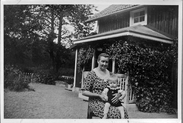 I rutig klänning Dagmar Svensson (Karlsson) Snällebo, Elsa Rosén (Svensson) Spårebo.