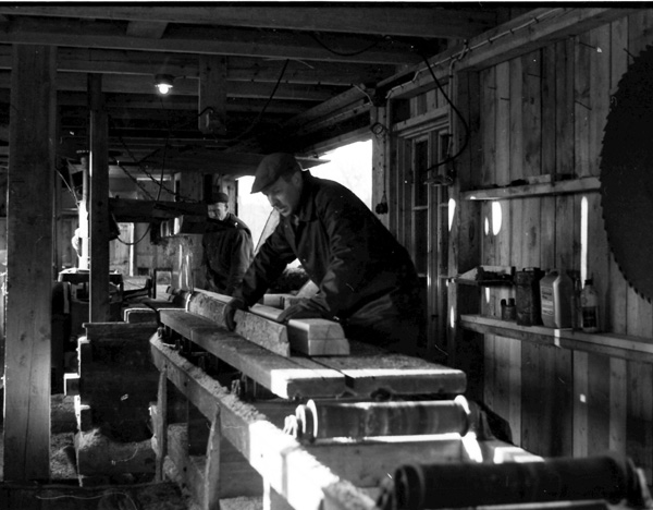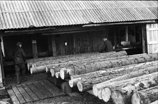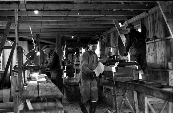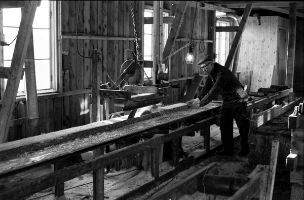 Bildtext: Arbete i sågen i Ogestad. Karl-Axel Björk och Alvar Jakobsson 760300