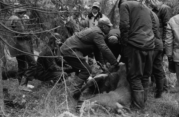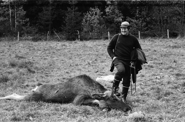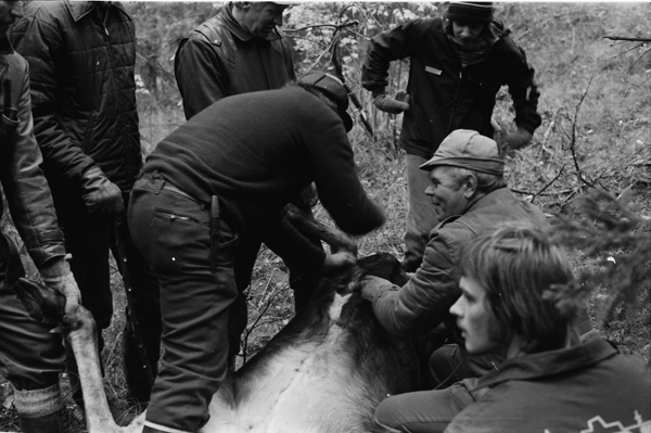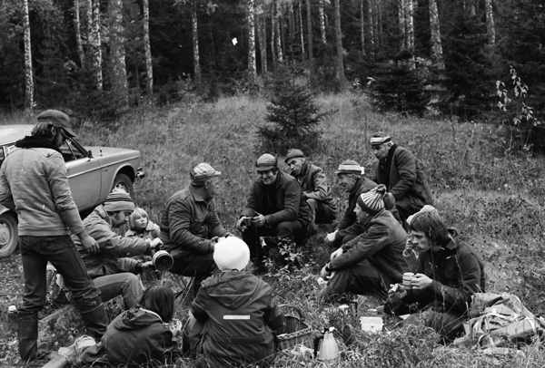 Bildtext: Lövtagning till midsommarstång 760625. Bilen är en Renault 16, en framhjulsdriven lite större halvkombi, tillverkad 1965 -1980.