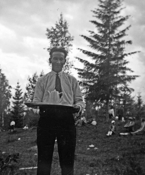 Bildtext: Två män med en fångad ekorre, till höger Bertil Johansson, Hagalund. Vet någon vem ?