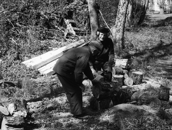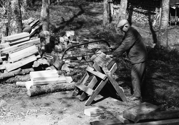 Sökord: ved vedhuggning såg sågbock kubb vedträd Motivkategori:arbete Id:3721 Fotograf: Carl-Axel Bröme Fotoår: 1976 Bildnummer: CB3439 Förening: Odensvi hembygdsförening Land: SE Motivplats: Kalmar, Västervik, Odensvi, Ogestad Teknik: Skannat sv/v negativ Rättighet: Originalplats: (visas ej publikt)
