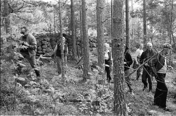 Bildtext: Torpvandring 800907 Axel Wilén, Einar Werner, Ivar Svensson m.fl.