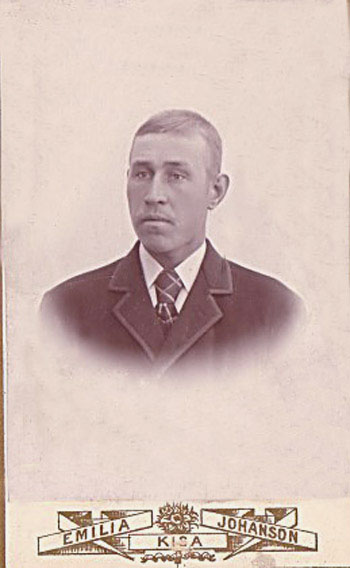 Bildtext: Axel i Källhagen. AXEL Fredrik Carlsson. Född 1871-09-08 i Kvisterum, Odensvi. Föräldrar: Torpare Carl Fredrik Carlsson i Simondal f 13/9 1830 i Löte. Gift 29/12 1866 med Bondedotter Lovisa Charlotta Andersdotter f 1/2 1835 i Eneby. Barn: Carl Victor f 19/6 1868. Axel Fredrik f 8/9 1871. Anders Oscar f 27/5 1875. Kom från Simondal 1866 och flyttar till Gustafsborg 1879. OBS: Original finns på Rötter, https://www.rotter.se/faktabanken/portrattfynd/oestergoetland/kisa/emilia_johanson_/16215 sökord: Visitkort Kabinettkort kabinettsfoto porträtt motivkategori: Personer id:15122 Fotograf: Emilia Johanson, Kisa fotoår: okänt bildnummer: 16215 förening: Odensvi hembygdsförening land: SE motivplats: Kalmar län, Västervik, Odensvi, Kvisterum teknik: - rättighet:(föreningen ovan om ej annat anges.) Eva Karlsson, Broddebo originalplats: (visas ej publikt) släktboken: publiceras: ja säljas: tidigare nr: samling: Rötters bildarkiv: Eva Karlsson, Broddebo skick: reg av: Per-Inge Linderson reg datum: 2009-05-10/2025-09-11 |