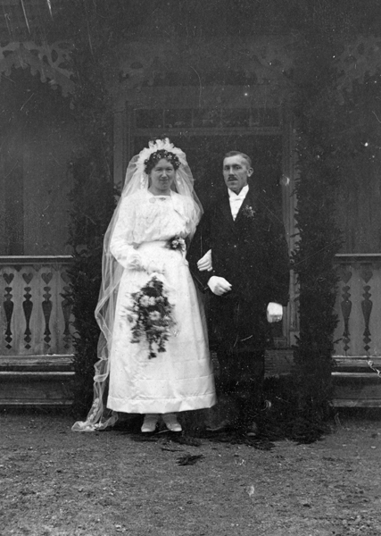 Bildtext: Bröllop mellan Gösta Lindén och Edit (från Gölinge) Ture Gösta Lindén i Tretorp f 17/10 1897 i Hjorted gift 23/11 1918 med Edit Maria Svensson i Gölinge f 16/2 1896 Barn: Nils Arne Alfonso f 10/12 1918 Aron Gösta Ingemar f 21/3 1920 Karl Allan f 1/11 1921 Flyttar till Västra Ed sökord: bröllopspar brudslöja evenemang gruppbild brudpar vigsel brudbukett brudgum vita handskar brudkrona motivkategori: kyrkligt id:15204 Fotograf: okänd fotoår: 1918 bildnummer: BIBA013 förening: Odensvi Hembygdsförening land: SE motivplats: Kalmar län, Västervik, Odensvi, Tretorp teknik: Skannat sv/v foto rättighet:(föreningen ovan om ej annat anges.) Birgitta Balck, Odensvi originalplats: (visas ej publikt) släktboken: publiceras: ja säljas: tidigare nr: samling: Birgitta Balck, Odensvi, privata bilder skick: reg av: Per-Inge Linderson reg datum: 2026-01-26 |