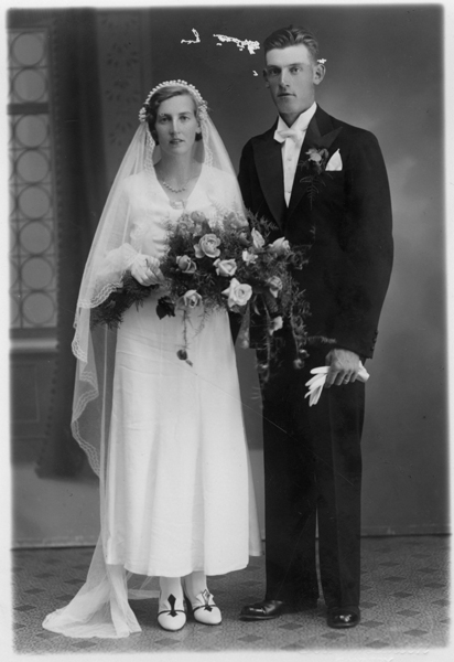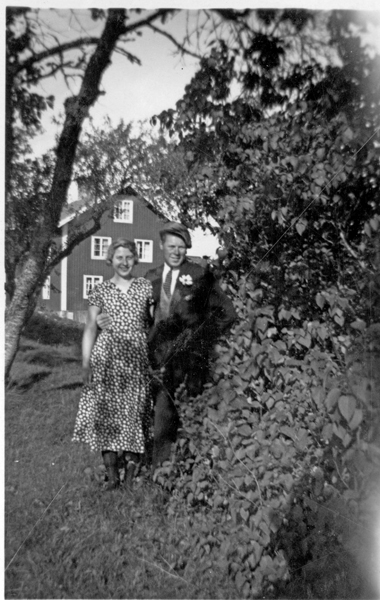 Bildtext: Erik och Elna Gustafsson i Möckelhult. Erik Olof Verner Gustafsson f 16/7 1904 i Hallingeberg (död 11/5 1988). Gift 19/9 1936 med Elna Karolina Nilsson f 13/8 1913 i Bockrössle. Barn: Lars Erik f 11/2 1937 i Odensvi. Ing-Britt f 28/4 1942 i Västervik. Margareta f. Kerstin f. Flyttar till Spånga i Hallingeberg 1947 och kom tillbaka till Möckelhult och flyttar sedan till Vimmerby. sökord: kakelugn, bröllop glasögon motivkategori: personer id:15147 Fotograf: okänd fotoår: okänt bildnummer: INOS478 förening: Odensvi hembygdsförening land: SE motivplats: Kalmar län, Västervik, Odensvi, Möckelhult teknik: Skannat sv/v foto rättighet:(föreningen ovan om ej annat anges.) Ingela Österling, Fågelrum originalplats: (visas ej publikt) släktboken: Ingela Österling, Fågelrum publiceras: ja säljas: tidigare nr: samling: Ingela Österling, Fågelrum skick: reg av: Per-Inge Linderson reg datum: 2025-09-12 |