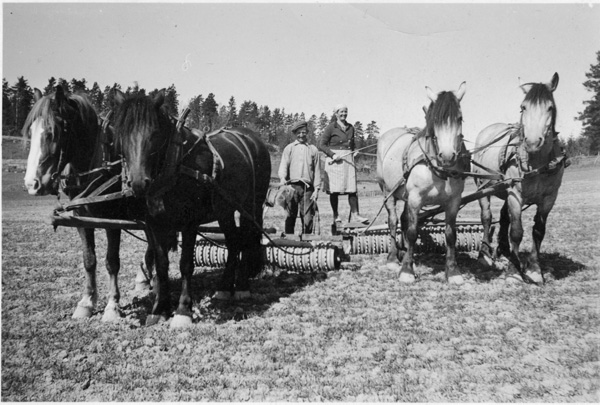 Bildtext: Helge o Helga Bergström med var sitt parekipage. Vältring vid Havet. sökord: arbetshästar parsele seldon tömmar hästkörning vårbruk vältrar välter Helge Bergström motivkategori: jordbruk id:15214 Fotograf: okänd fotoår: okänt bildnummer: BIBA029 förening: Odensvi Hembygdsförening land: SE motivplats: Kalmar län, Västervik, Odensvi, Havet teknik: Skannat sv/v foto rättighet:(föreningen ovan om ej annat anges.) Birgitta Balck, Odensvi originalplats: (visas ej publikt) släktboken: publiceras: ja säljas: tidigare nr: samling: Birgitta Balck, Odensvi, privata bilder skick: reg av: Per-Inge Linderson reg datum: 2026-01-28 |