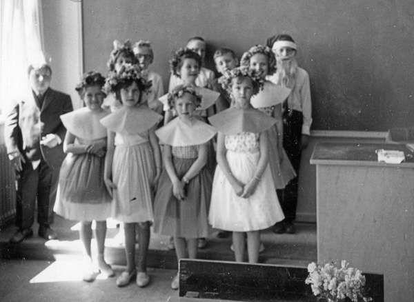 Bildtext: Lucia i Odensvi 1964. Lucia uppträder med sina tärnor i Odensvi skola 1964. Namn från vänster: Ingrid Grönqvist, Britt Fransson, Irene Andersson, Eva Andersson, Lucia Birgitta Carlsson, Inger Johansson, Berit Andersson, Kristina Gustafsson, Gunnel Jakobsson och Karin Antonisson. Tomtarna bakom är okända. Se även bild KJMA2207. sökord: lucia tärnor stearinljus ljuskrona luciatåg motivkategori: kyrkligt id:15220 Fotograf: okänd fotoår: 1964 bildnummer: BIBA058 förening: Odensvi Hembygdsförening land: SE motivplats: Kalmar län, Västervik, Odensvi, byn teknik: Skannat sv/v foto rättighet:(föreningen ovan om ej annat anges.) Birgitta Balck, Odensvi originalplats: (visas ej publikt) släktboken: publiceras: ja säljas: tidigare nr: samling: Birgitta Balck, Odensvi, privata bilder skick: reg av: Per-Inge Linderson reg datum: 2026-02-07 |