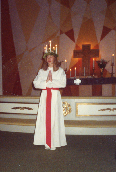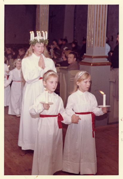 Bildtext: Anna Grönhammar, Lucia i odensvi kyrka 1963. Tärnorna är okända. sökord: lucia tärnor stearinljus ljuskrona luciatåg motivkategori: kyrkligt id:15221 Fotograf: okänd fotoår: 1963 bildnummer: BIBA082 förening: Odensvi Hembygdsförening land: SE motivplats: Kalmar län, Västervik, Odensvi, kyrkan teknik: Skannat färgfoto rättighet:(föreningen ovan om ej annat anges.) Birgitta Balck, Odensvi originalplats: (visas ej publikt) släktboken: publiceras: ja säljas: tidigare nr: samling: Birgitta Balck, Odensvi, privata bilder skick: reg av: Per-Inge Linderson reg datum: 2026-02-07 |