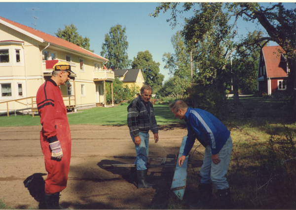 Bildtext: Föreningen Retzen byggde två hyreshus i Odensvi det första 1990. Håkan Balck, Karl-Axel Jakobsson och Åke Nilsson jobbar med nybygget av hyreshusen på byvägen här med att så in gräsmattan med en handdragen markdriven såmaskin. Denna modell av frösåmaskin tillverkades av Överums Bruk i över 100år. Husen ägs nu av Regenten fastighets AB. sökord: hyreshus flerbostadshus trappuppgång Byvägen hyresgäster motivkategori: hus id:15244 Fotograf: okänd fotoår: troligen 1990 bildnummer: BIBA090 förening: Odensvi Hembygdsförening land: SE motivplats: Kalmar län, Västervik, Odensvi, byn teknik: Skannat sv/v foto rättighet:(föreningen ovan om ej annat anges.) Birgitta Balck, Odensvi originalplats: (visas ej publikt) släktboken: publiceras: ja säljas: tidigare nr: samling: Birgitta Balck, Odensvi, privata bilder skick: reg av: Per-Inge Linderson reg datum: 2026-02-21 |