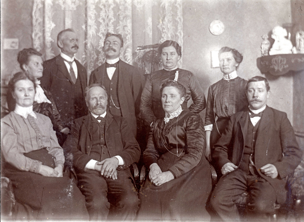 Bildtext: Stående från vänster. Ivar, David, Helga, Rickard, Hildur, Sven, Erik. Sttande Pappa Frans Oskar Gustavsson och Mamma Matilda Svensdotter, boende i Stenserum. De sitter framför huset. Se mer personuppgifter på bild INOS486. sökord: släktbild gruppbild Samuelsson motivkategori: personer id:15127 Fotograf: okänd fotoår: okänt bildnummer: INOS578 förening: Odensvi hembygdsförening land: SE motivplats: Kalmar län, Västervik, Hallingeberg, Stenserum teknik: Skannat sv/v foto rättighet:(föreningen ovan om ej annat anges.) Ingela Österling, Fågelrum originalplats: (visas ej publikt) släktboken: Ingela Österling, Fågelrum publiceras: ja säljas: tidigare nr: samling: Ingela Österling, Fågelrum skick: reg av: Per-Inge Linderson reg datum: 2025-09-11 |