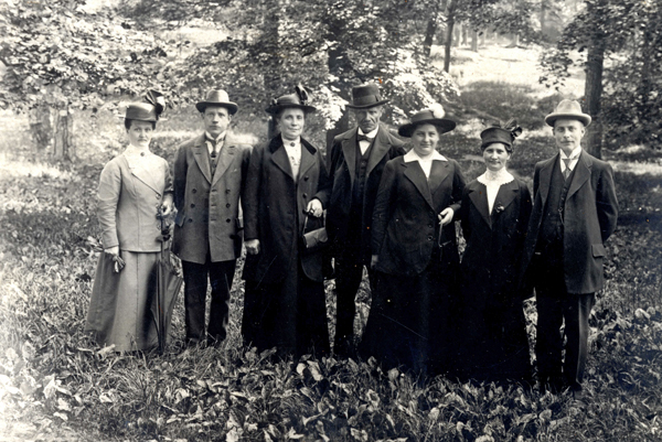 Bildtext: Bilden är troligen tagen i Stockholm där de namngivna personerna bodde. 1) ALMA Augusta Svensson (gift Andersson) född 21 jan 1878 i Norra Stenserum, Hallingeberg. 2) Jakob AXEL Andersson, född 3 apr 1875 i Eneby, Odensvi. 3) okänd. 4) okänd. 5) ELIN Axelina Månsson född 31 okt 1880 i Norra Stenserum, Hallingeberg. 6) HILDUR Matilda Månsson född 23 feb 1883 i Norra Stenserum, Hallingeberg. 7) okänd. /// Information från Annika Ekström. sökord: Stadspark stadspromenad handväska paraply motivkategori: personer id:15166 Fotograf: okänd fotoår: okänt bildnummer: INOS579 förening: Odensvi hembygdsförening land: SE motivplats: Stockholm teknik: Skannat sv/v foto rättighet:(föreningen ovan om ej annat anges.) Ingela Österling, Fågelrum originalplats: (visas ej publikt) släktboken: Ingela Österling, Fågelrum publiceras: ja säljas: tidigare nr: samling: Ingela Österling, Fågelrum skick: reg av: Per-Inge Linderson reg datum: 2025-09-15 |