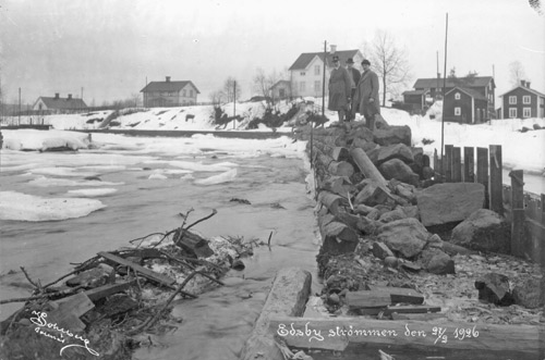Sökord: ström, älv, by, hatt, man, hus, byggnad, snö Motivkategori:natur Id:2026 Fotograf: Sohlberg, Bollnäs Fotoår: 1926 Bildnummer: sobme-0863 Förening: Forskarföreningen Släkt och Bygd i Bollnäs Land: se Motivplats: Gävleborg, Ovanåker, Edsbyn Teknik: skannat foto Rättighet: Originalplats: (visas ej publikt)