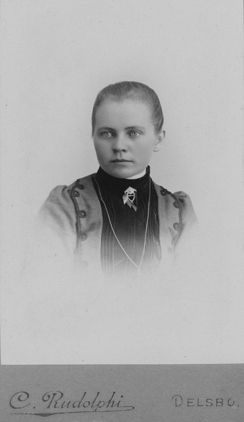 Sökord: porträtt, kvinna, dräktsmycke Motivkategori:Ateljé Id:10770 Fotograf: Rudolphi, Delsbo Fotoår: Bildnummer: OLN-046 Förening: Delsbo Hembygdsförening Land: SE Motivplats: Gävleborg, Hudiksvall, Delsbo Teknik: 5,8 x 10,1 cm, skannad påsiktsbild, 16-bitars gråskala, 600 ppi Rättighet: Delsbo Hembygdsförening Originalplats: (visas ej publikt)