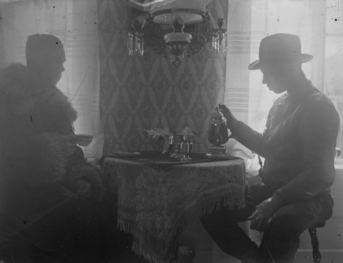 Sökord: fritid, tre män, djur, hund, hare, bössor, timmerstuga Motivkategori:gård, entré, veranda, fäbodvall, stugområde Id:6019 Fotograf: troligen Karlsas Karl Jonsson Fotoår: Bildnummer: KAL-050 Förening: Delsbo Hembygdsförening Land: SE Motivplats: Teknik: 12,0 x 9,0 cm, negativ glas, 16-bitars gråskala, 2800 ppi Rättighet: Delsbo Hembygdsförening Originalplats: (visas ej publikt)