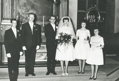 Sökord: händelser, fritid, män, kvinnor, bröllop, brudpar, brud, brudbukett, brudslöja, pumps, brudgum, tärnor, marschalkar, ljus, ljusstakar, bröllopssällskap, familjehögtid, Motivkategori:interiör, kyrkoanläggning Id:6221 Fotograf: Fotoår: Bildnummer: KEE-167 Förening: Delsbo Hembygdsförening Land: SE Motivplats: Gävleborg, Hudiksvall, Delsbo Teknik: 11,5 x 7,8 cm, inskannad påsiktsbild, 48-bitars färg, 1200 ppi Rättighet: Delsbo Hembygdsförening Originalplats: (visas ej publikt)