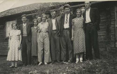 Sökord: fritid, gruppfoto, män, kvinnor, djur, hund, skidor, stavar, hundpulka, solglasögon Motivkategori:ute Id:6308 Fotograf: Fotoår: Troligen 1941 Bildnummer: DAA-021 Förening: Delsbo Hembygdsförening Land: SE Motivplats: Gävleborg, Hudiksvall, Delsbo, Lillvallen Teknik: 8,3 x 5,2 cm, inskannad påsiktsbild, 48-bitars färg, 800 ppi Rättighet: Delsbo Hembygdsförening Originalplats: (visas ej publikt)