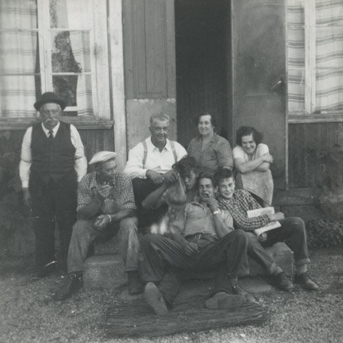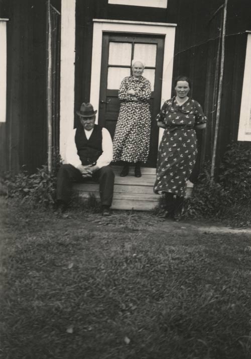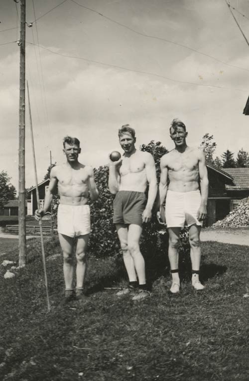 Bildtext: Fr. v: Sven A, mitten: Axel W, höger: John Andersa. // 2013-04-05 Dan Andersson: Det är från vänster Sven Andersson (Ferms Sven), Axel Wiberg Svantes Axel från Fönebo samt John Andersson (Ferms John). Axel var morbror till John och Sven. Platsen är John och Sven´s föräldrahem i Östra Tolbo. De håller tydligen på att träna Friidrott. Tidpunkten är nog sent 30-tal till tidigt 40 tal. // 2013-10-08 Dan Andersson: Bilden kommer från Viveka Kemperyd (Född Wiberg) i Nora.