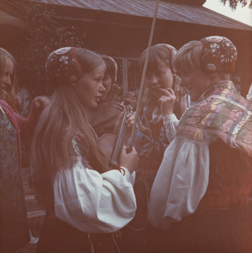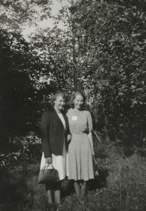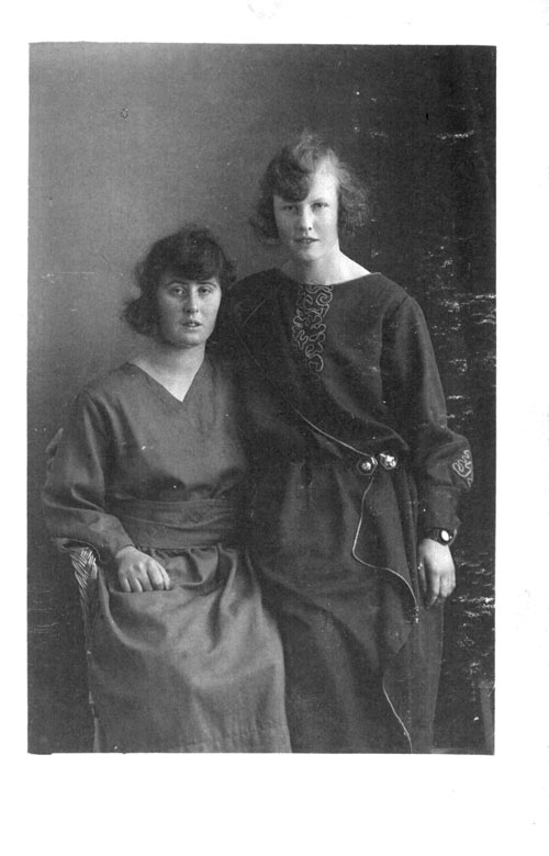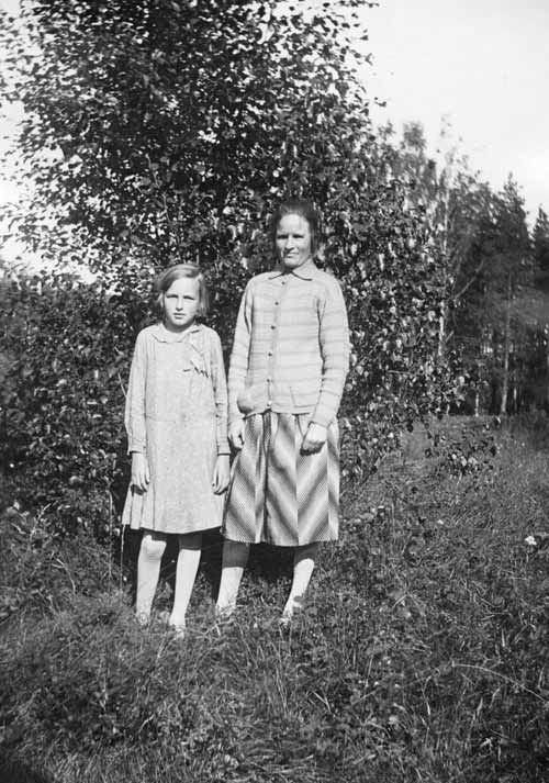 Bildtext: Not. på foto: Anna Larsson, Marta Larsson, Ava, Delsbo.// 2023-03-13 Inger Glad: Min farmor Anna Larsson f. 4/9 1905 i Ava3 och hennes syster Märta f. 9/3 1907. Anna Larsson var gift med Erik Jonsson f. 9/3 1903 i Vij 1. Utflyttad till Bjuåker 1934.//