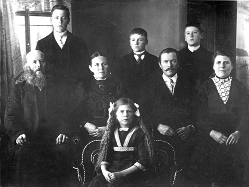 Bildtext: "Hökberg jäntorna" Systrarna Bodin. Här samlade framför en julgran. Namn, ej nämnd ordning. Hilda , Märta, Svea, Elsa, Elin, Signe. se även bild en-j-126 och en-a-35