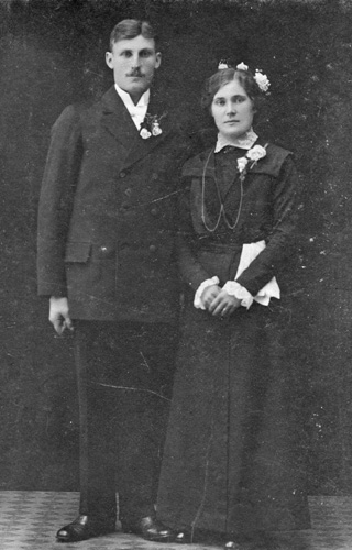 Bildtext: från vänster; Elin Bergqvist/Olsson, Hedvig och Arvid Enström, framför ses Eva Enström. Fotot från Grängsjö. Det är Västigården som skymtar i bakgrunden, bakom Grängsjön. Bilen är en Morris Minor. Denna bil kallades i folkmun på 50-talet för "Bjuråkers moped". Mest vanlig i Bjuråker. Jonny Dahlström började sin bilförsäljarkarriär i denna bygd.