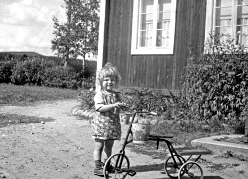 Bildtext: På Västerockavallen i Enånger. I gröngräset sitter i bakre raden fr.v. Axel Rehnström Vedmora, Vivi Svedberg Annefors, Erik Svedberg Annefors. Främst fr.v. Anna Rehnström Annefors, Kristina Frisk Vedmora, Eivor Rehnström Vedmora, Ida Rehnström Vedmora med Sune Svedberg Annefors i knät, Einy Svedberg Annefors och Gunni Rehnström Vedmora.