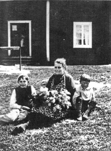 Bildtext: Björka skola i Söderrå.Bland eleverna ses,längst bak till höger; Elsie Larsson(f. 1929)(g.Bäcklund), näst längs bak, nr1; Edith Larsson(f.1926)(g.Bergman) och tredje raden längst bakifrån, nr1; Gunhild Larsson(f.1928)(g. Flodman), allla dessa var systrar.