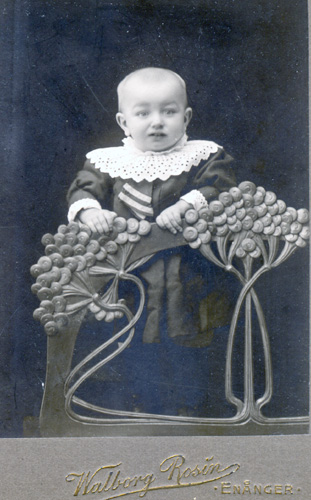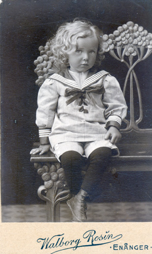 Bildtext: Henrik, Lisen, Walter Wanda Kompletterande bildsynpunkt: Makarna Henrik Sättlin (1872-1952) och Lisen Holmin (1873-1950): Barnen Valter född 1895, Wanda Kathrina, 1896-1901. Systern född 1901 döptes till Vanda, men alltså ej med på denna bild. Sistnämnda enligt en teori via en inkommen bildsynpunkt