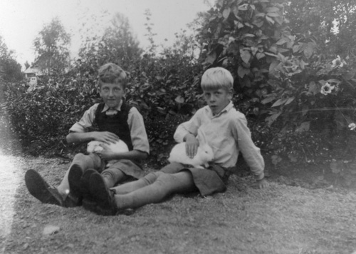 Bildtext: Hilding och Anny Enberg med Johnny, och Elsy Munther. Platsen är Grimbo