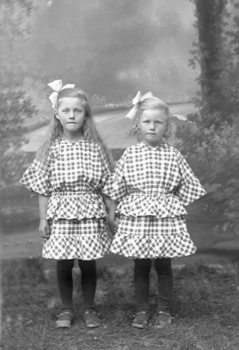 Bildtext: Bilden föreställer systrarna Ingrid och Stina Persson, Bäckmora. Ingrid till vänster, senare gift Edström, Bölan. Stina till höger på bild, senare gift Sättlin, Bölan.