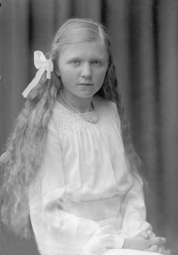 Bildtext: skolkort, elever vid Holmens skola, sjunde klassen. Fr.v. övre rad Göta Sjödin Finnicka, Maj Brolin Rössånger, Gun Östlund Finnicka, Berit Johansson Långvind, Ulla Brolin Fläcka, lärarinnan Rut Ekbrink Holmen, Bernt Strömgren Myra, Lennart Settlin Vedmora