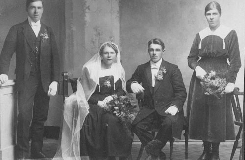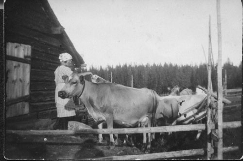 Bildtext: Julfestligheter i Tjärnvall. Ingegerd Olofsson, Karin Nilsson, Svea Eriksson, Lärare Ebba Nordell, Birgit Swedberg, Ture Andersson, Rut Smedback