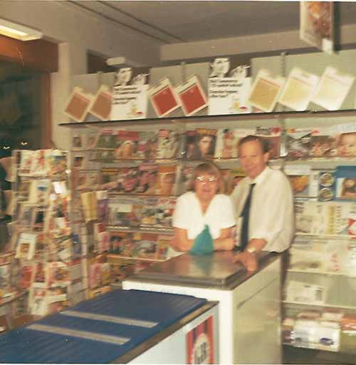 Bildtext: Från butiken Cleo i gamla Posthuset på Statitionsgatan, Ägaren Anders Johansson (tackotack) med hustru Hildur