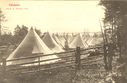 Bildtext: Efter den förödande branden i Åvik år 1906. Enligt fotot så rör denna bild Tunbacka. Noterbart är den främsta byggnaden som klarat sig undan elden, och som tolkas som en fotoateljé (enligt detaljstudie av bildförstoring).Det är Oscar W Olssons egen atelje!