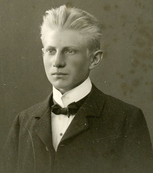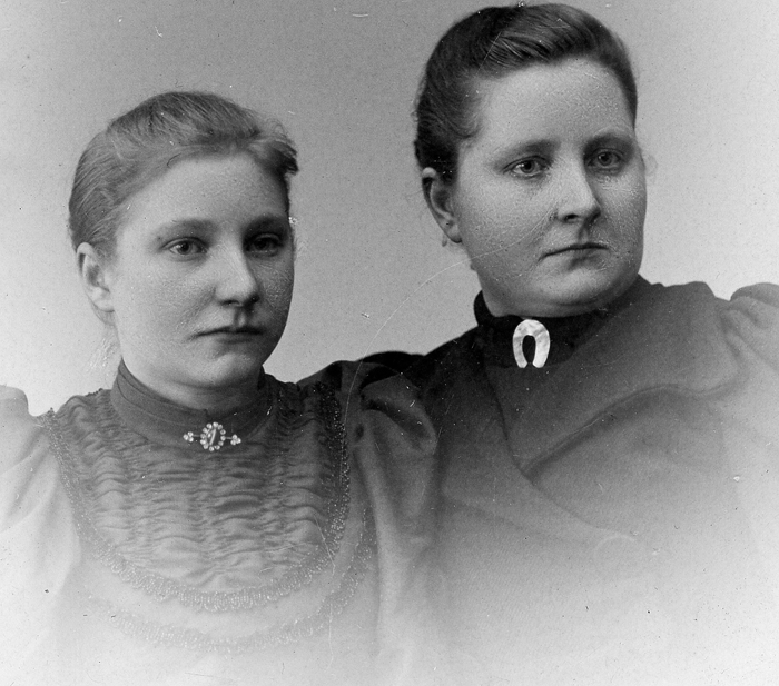 Bildtext: Sjölins, Personerna är: Gustav Sandström, Hanna Sjölin, Arvid Sjölin, Per Sandström, Ellen o Ingrid Sjölin, Anna Sandström, Johannes Sandström och Rut Sjölin (Fagerström).Anna Sandström är dotter till bonden Per Jansson, Idenor. (Per Jansas).